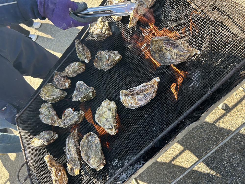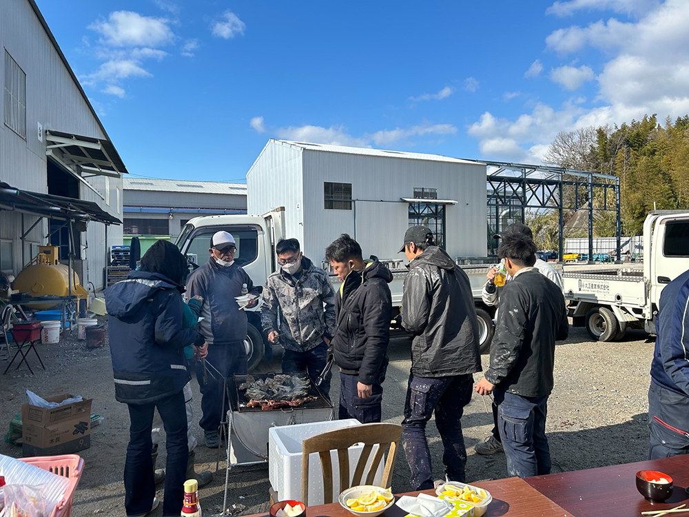 従業員とその家族とみんなで、牡蠣を焼いたり肉を焼いたり、、、おしるこ食べたり😆